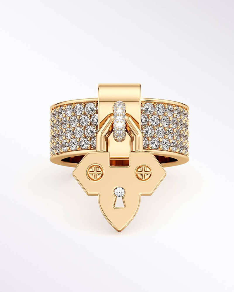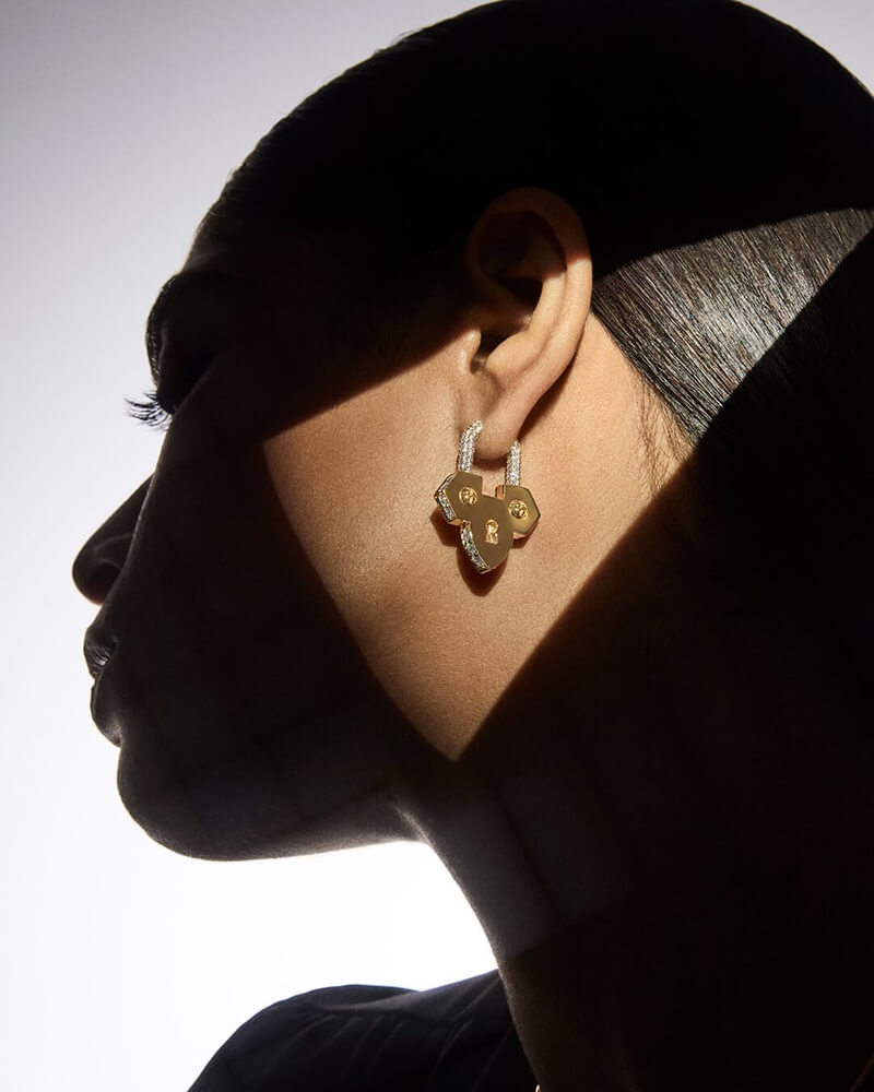 كل قطعة في المجموعة مصممة كـقفل (padlock) – لكنه ليس قفلاً عادياً. إنه قفل لن يُفتح أبداً، لأن ما يحميه “ليس مُفترضاً أن يُكشف”. هذه فكرة قوية وشاعرية: الاحتفاظ بالسر ليس ضعفاً، بل قوة. الحفاظ على عالم داخلي خاص ليس انطواءً، بل حماية للأشياء الأكثر قيمة في حياتنا.