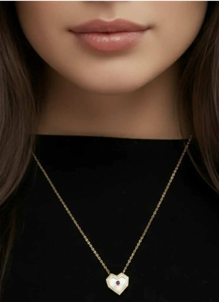 Lana Al Kamal Jewelry، قطعة “Amal Necklace” (قلادة أمل) هي قلب هندسي مصنوع من: