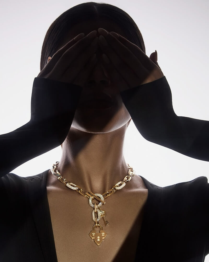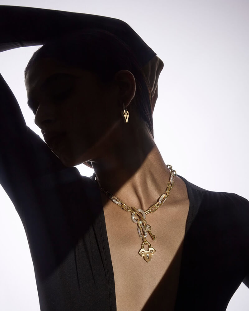 “Love Locked invites the wearer to embrace the emotions that dwell quietly within the heart,” explains the House. The collection isn’t about declaring your love to the world—it’s about keeping it close, locked safely in a precious talisman.