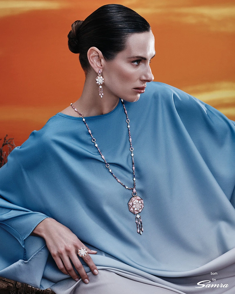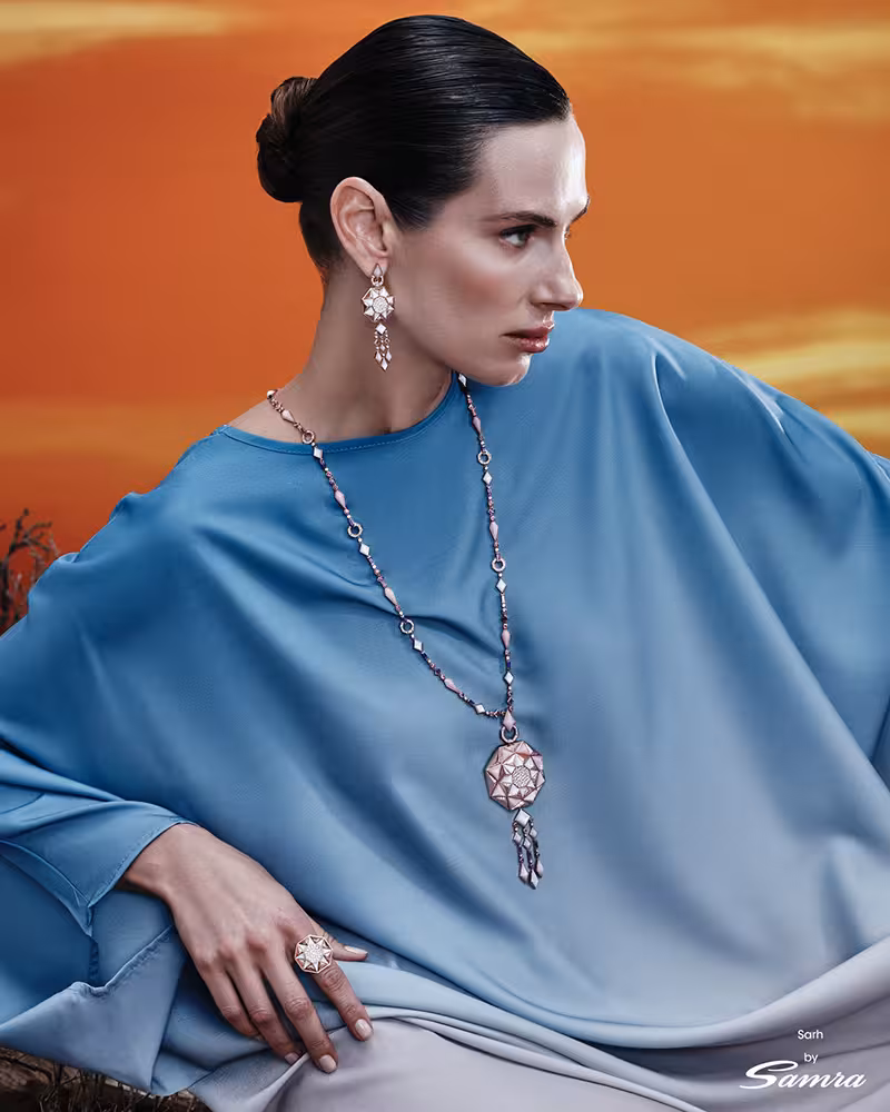 Arab artistry remains at the heart of the brand’s identity, where traditional designs are reinterpreted through geometric elements, rose gold, diamonds, precious gemstones, and mother-of-pearl — creating a balanced dialogue between culture and contemporary creativity. The maison also embraces collaboration and community, highlighted through the “Samra Collective,” which features influential figures in the UAE, including artists, poets, businesswomen, and more.