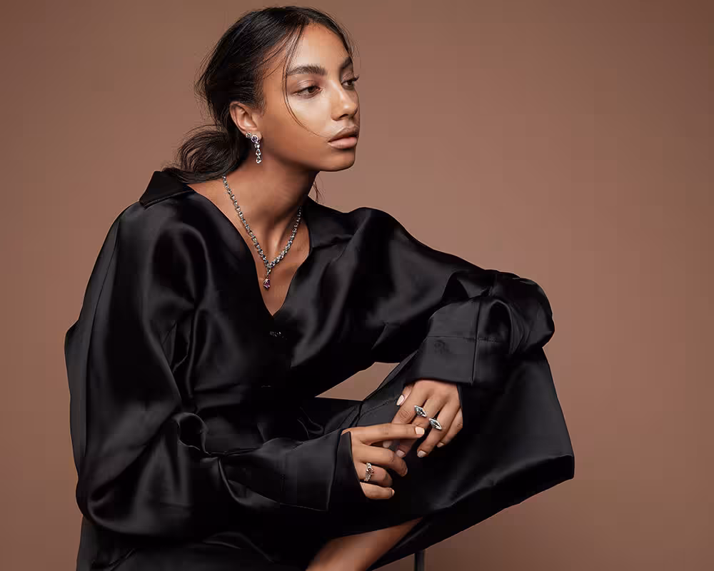 Karina Choudhrie is a fine jewelry designer based in London — born in Mumbai and raised in Dubai before settling in the British capital. She earned her gemologist certification in California and began her career designing bespoke pieces for private clients in 2007. After 15 years of working on custom designs, she launched Karina Choudhrie Jewels, which includes High Jewelry collections like “Under the Sea” and Fine Jewelry collections like “Vitamin Pink” and “Icon.”