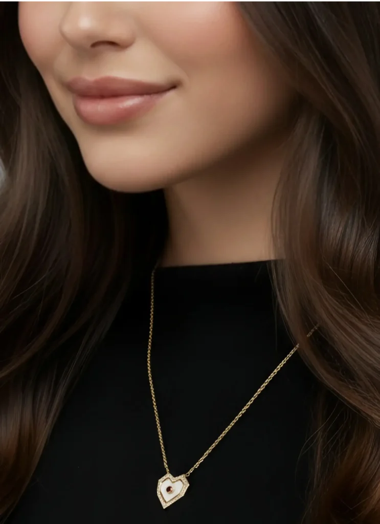 - Pavé diamonds (small paved diamonds) framing the heart — a symbol of light and strength